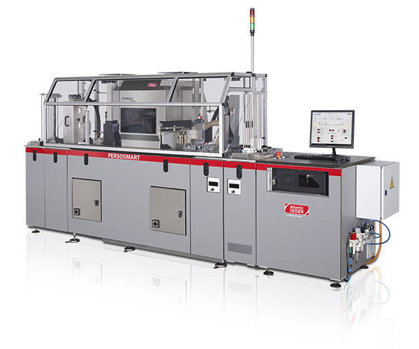 Engineered as a mid-range system for an hourly output of up to 1,700 cards* (mono dual sided), the PERSOSMART has a limited footprint of less than six square meters. Whether operating as the main production line or as a cost-effective backup for an existing larger line – the PERSOSMART is equipped for all current card design trends.