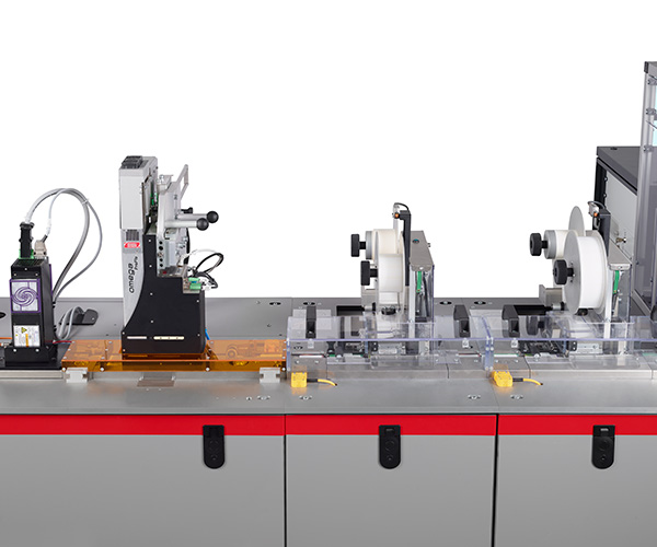 Inline application of pre-printed activation labels; handles a wide variety of label dimensions; no tooling required for different label sizes; print-on-demand labeling to apply blank labels and dynamically personalize them on the fly