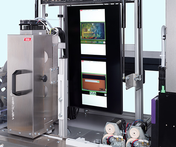 VERICAM Pro camera verification to check correct preparation of rainbow decks; card orientation verification; fast setup, no layout parameters required for teach-in; X/Y print registration function for precise positioning of personalized content